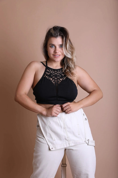 Elevate your wardrobe with our Floral Cutout Seamless Bralette! The high neckline and strappy back create a sleek and stylish look, while providing a smooth and supportive fit. Perfect for layering or wearing on its own, this brami is a must-have for any fashion-forward individual.