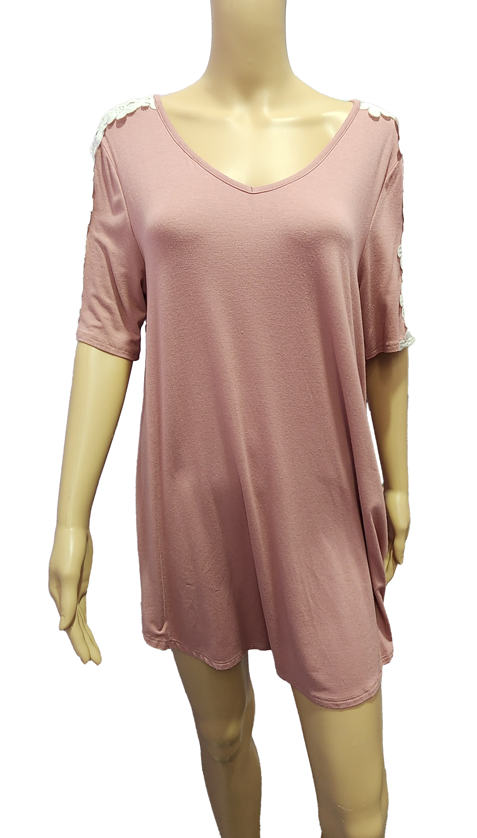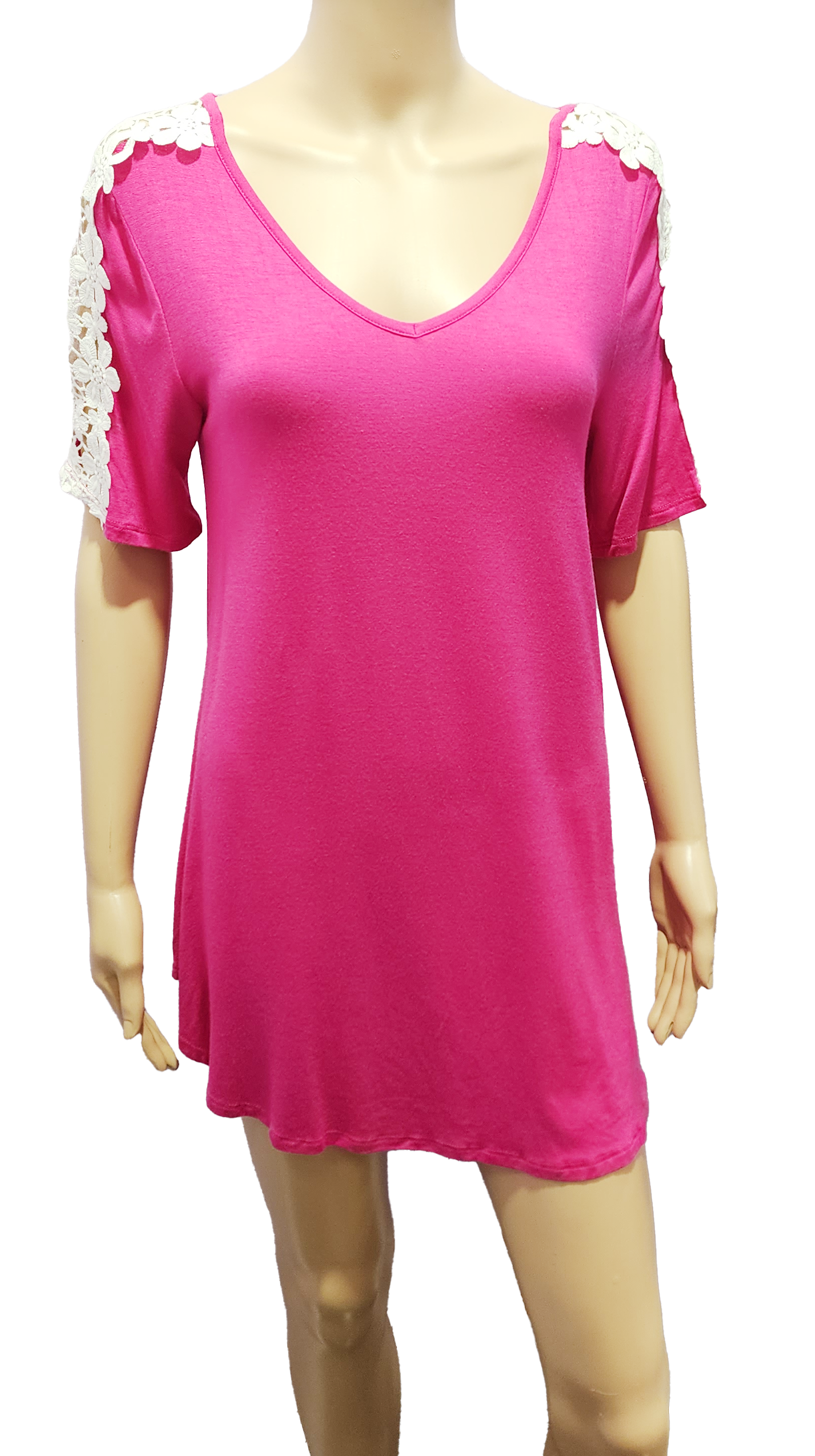 Look cute and be comfortable in this Floral Sleeve Dress! You'll love the flirty floral mesh on the shoulder-length sleeves and the classic t-shirt dress silhouette. Ready to hit the town and turn some heads? This dress has you covered!
