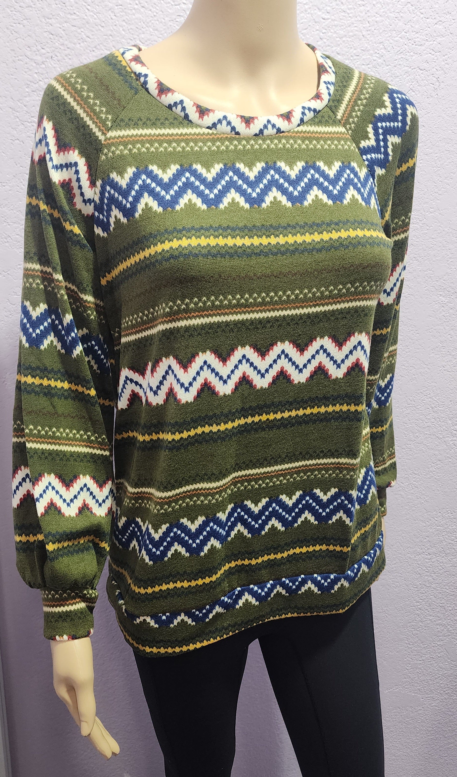 This merry top is perfect for your Christmas gatherings! Long sleeve and crafted in the USA, it's sure to keep you feeling festive. Get cozy and comfy in this green top with a fun pattern -- it's the gift you didn't know you wanted!