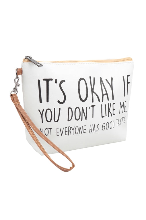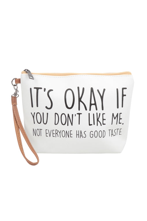 This sassy and witty cosmetic pouch bag is perfect for any occasion! It's made of polyester fabric with a zipper closure and wristlet for effortless carrying. Store all your makeup, toiletries, and accessories in spacious style while you keep your look fashionable and organized. Show off your personality with this unique cosmetic pouch bag!