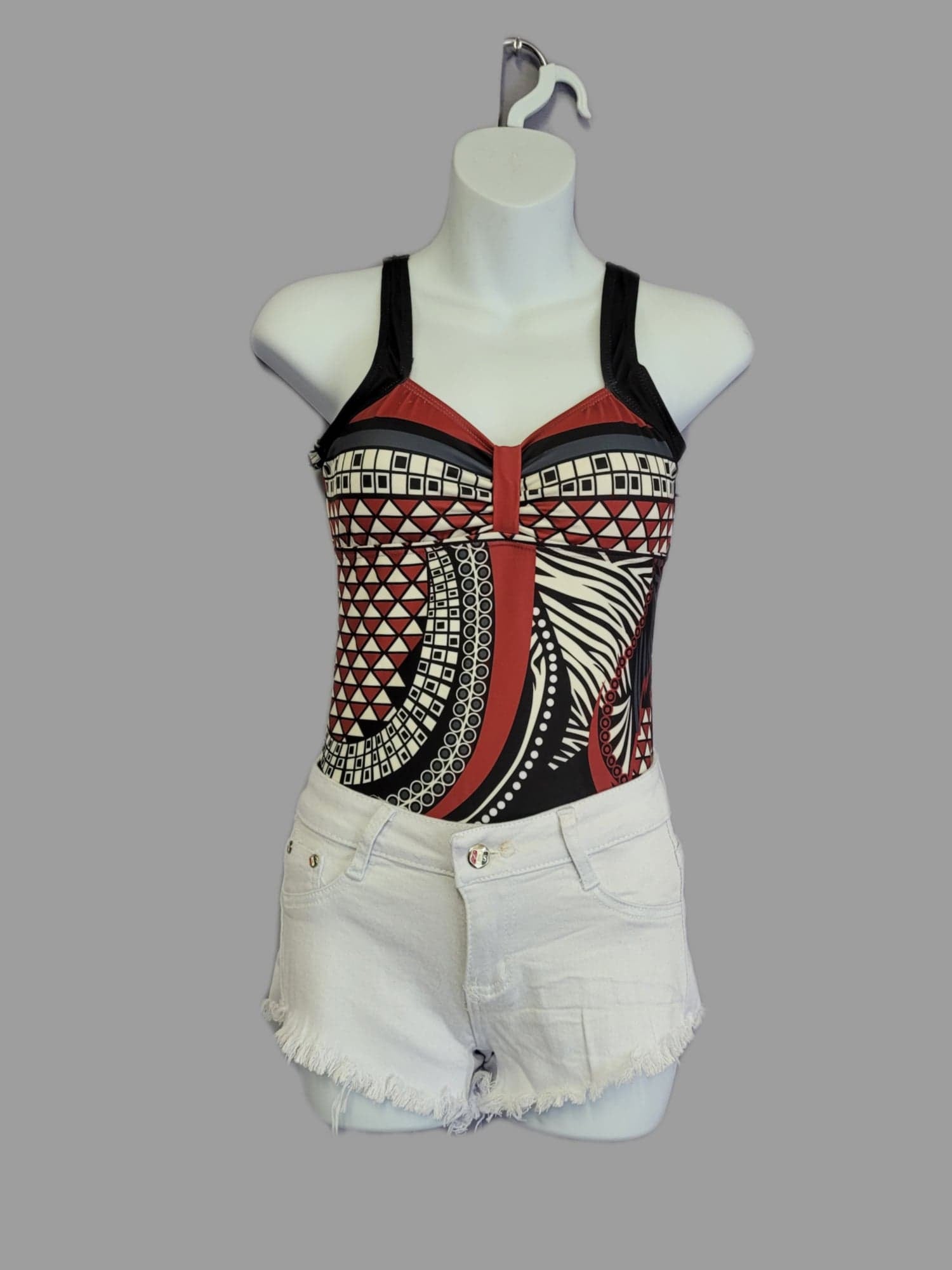 We would recommend staying true to size but can be downsized for a tighter fit. These shorts hug the hips and have some stretch. Becky is a size 16 and can fit in a 2XL, which measures as a size 15.