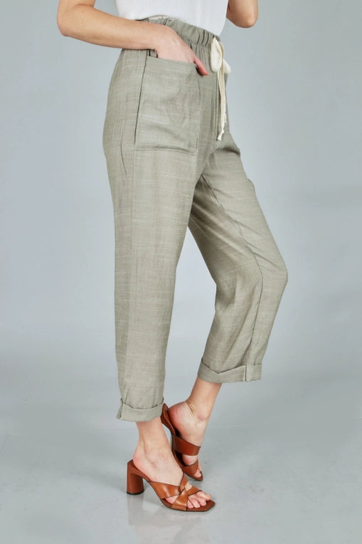 Elevate your wardrobe with our Textured Solid Woven Pants. The high waist and elasticized waistband with drawstring add comfort and style, perfect for any occasion. Crafted with a soft blend of rayon and poly, these pants are a must-have for your daily look.