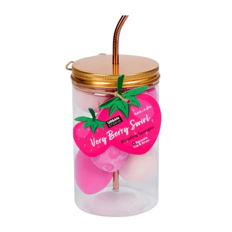 Very Berry 6 piece "Blending Sponges" with reusable cup. Makeup sponges that are light as air, designed to make blending effortless, buildable and perfectly seamless.