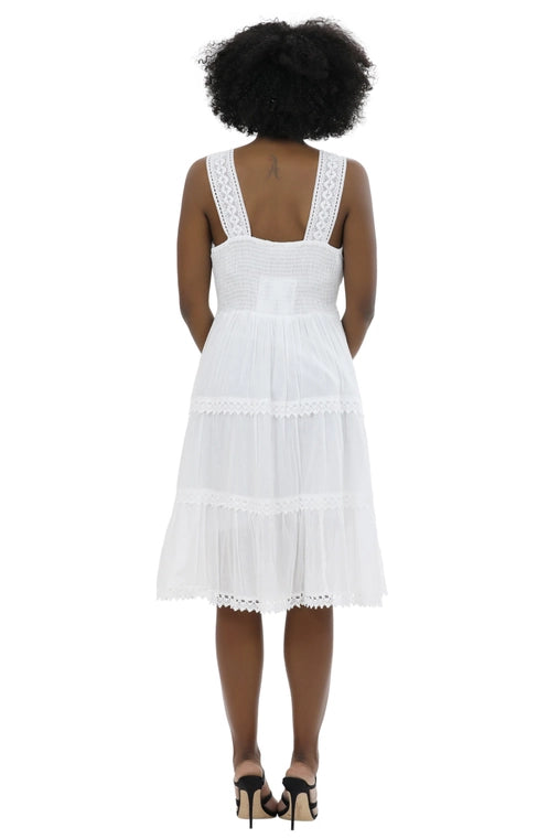 Embrace your feminine style with our Cotton White Dress! Made from soft cotton, this dress features delicate knit lace designs and a tiered skirt that will add a touch of elegance to your look. Perfect for any occasion, experience the comfort and beauty of our dress.