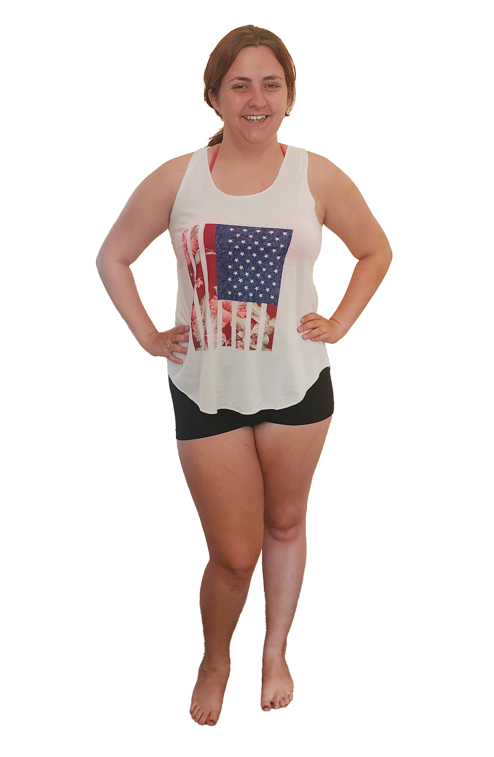 This stylish Floral American Flag Tank Top is the perfect way to show your patriotism. It is crafted from a cotton-polyester blend that ensures long-lasting comfort and breathability. The unique design features a blue bandana background for the stars and hibiscus flowers for the stripes, while a sheer white tank top lends a feminine touch.