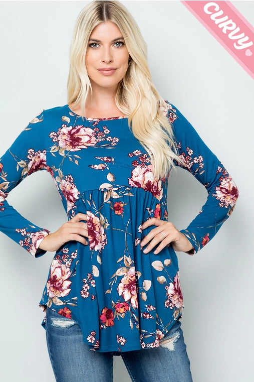 Look weekend-ready in this adorable long sleeve floral top! Crafted from soft jersey fabric, it's got the right amount of stretch for all-day comfort. Plus, this sweet babydoll top is sure to flatter any figure. Denim or leggings? Why choose when you can have both! (you're welcome).