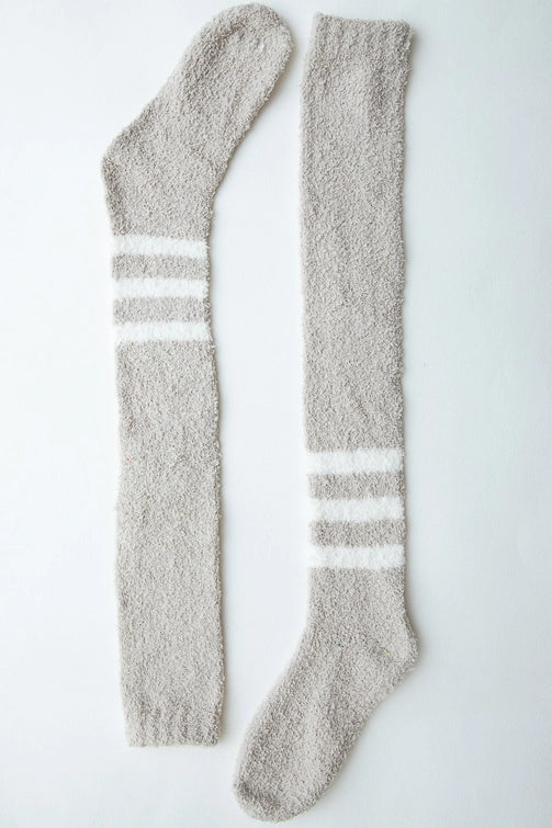 Indulge in the warmth and comfort of our Knee High Bouclé Socks, a perfect blend of style and coziness. With three stripes above the ankle, these socks offer an exquisite touch to your winter fashion. Crafted with bouclé yarn, they provide an extremely soft feel that caresses your feet. Whether you're seeking fashionable knee-length socks or looking for the ideal gift, these thick knee-high socks are the perfect choice. Embrace the soft textured luxury and make every step a delight!