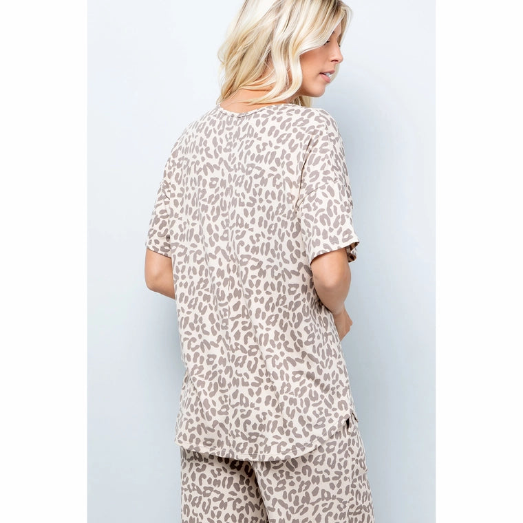 Curl up in style with this Leopard Loungewear Top! This short sleeve top is perfect for at-home lounging - its soft, comfy fabric is an absolute must for your Netflix & chill sessions. And with the leopard print, you'll look purrrfect (we couldn't resist) in any setting.