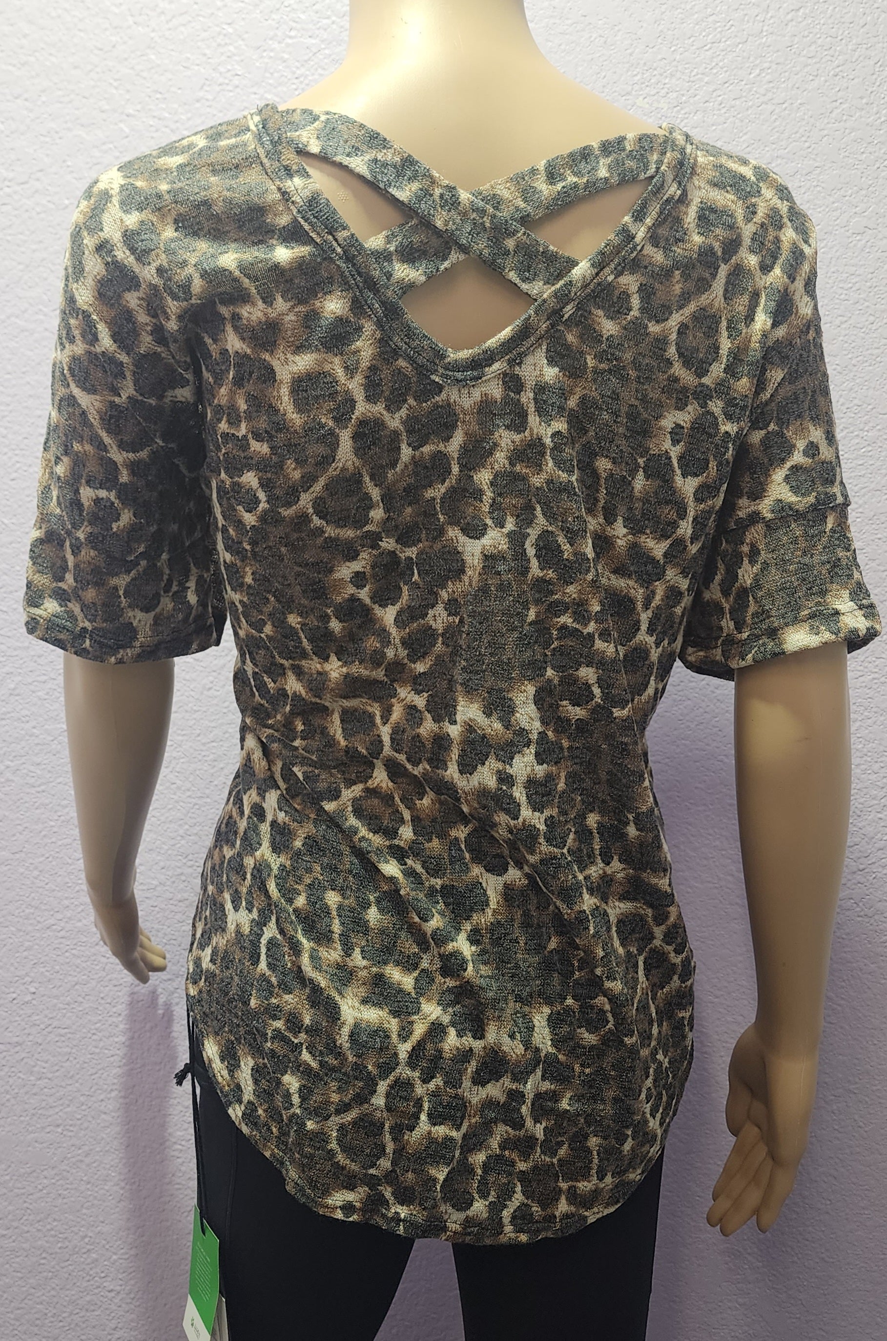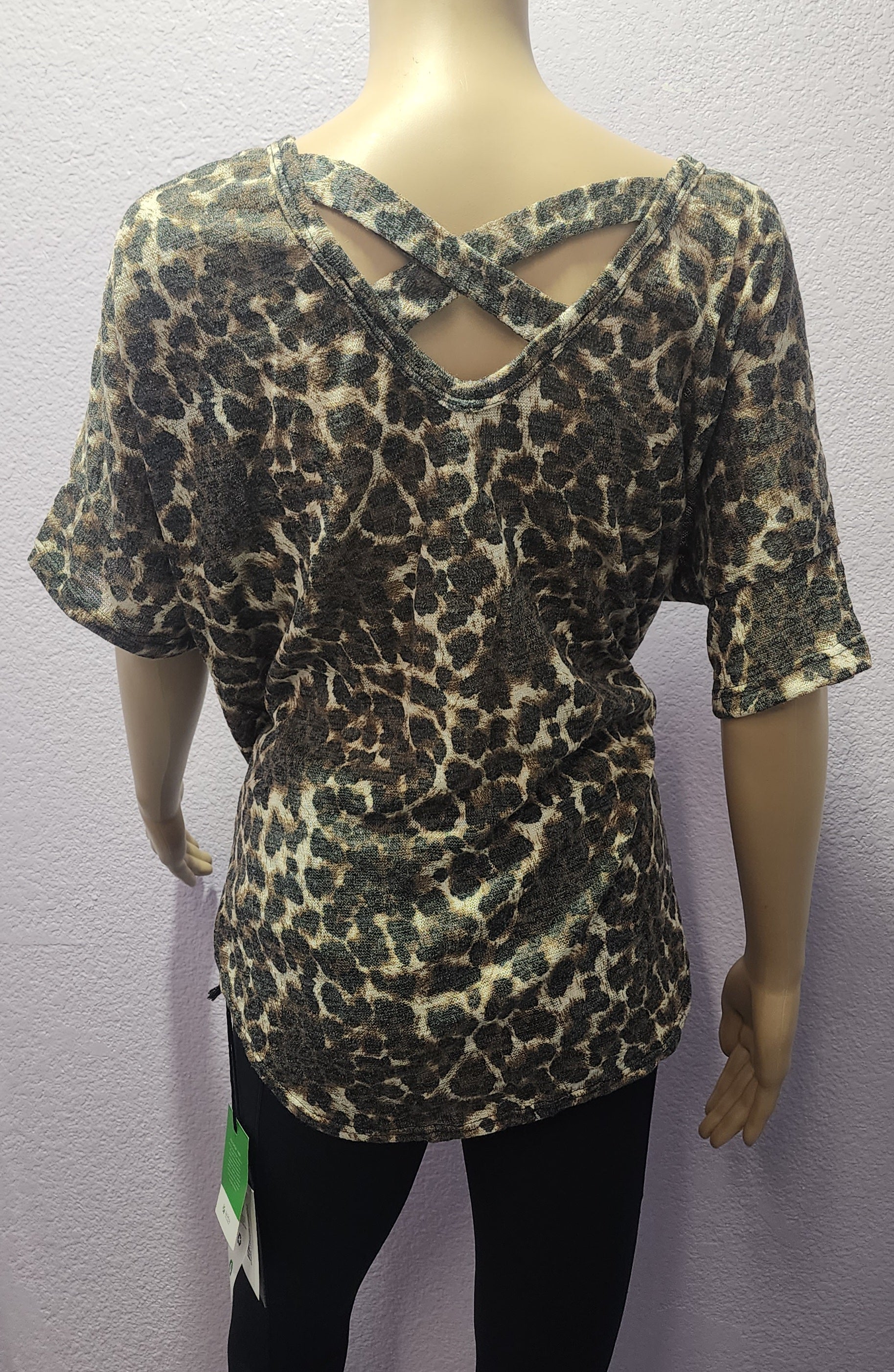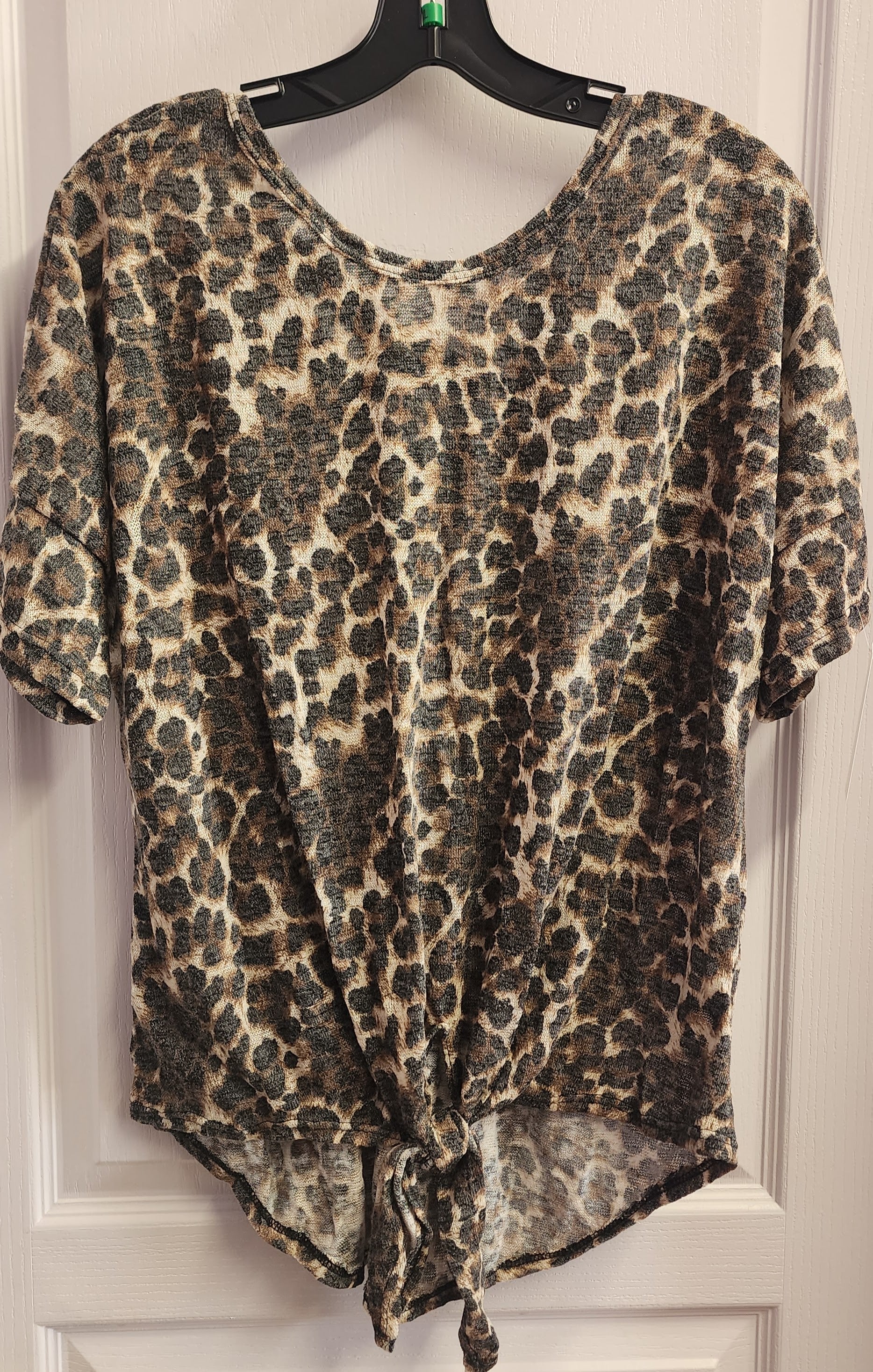 Stand out in style with this exquisite leopard print top! Crafted in the USA, this eye-catching piece is a knitted top featuring a tie-knot in the front, a criss-crossed design in the back, and an all-over brown leopard print that is great for any occasion.