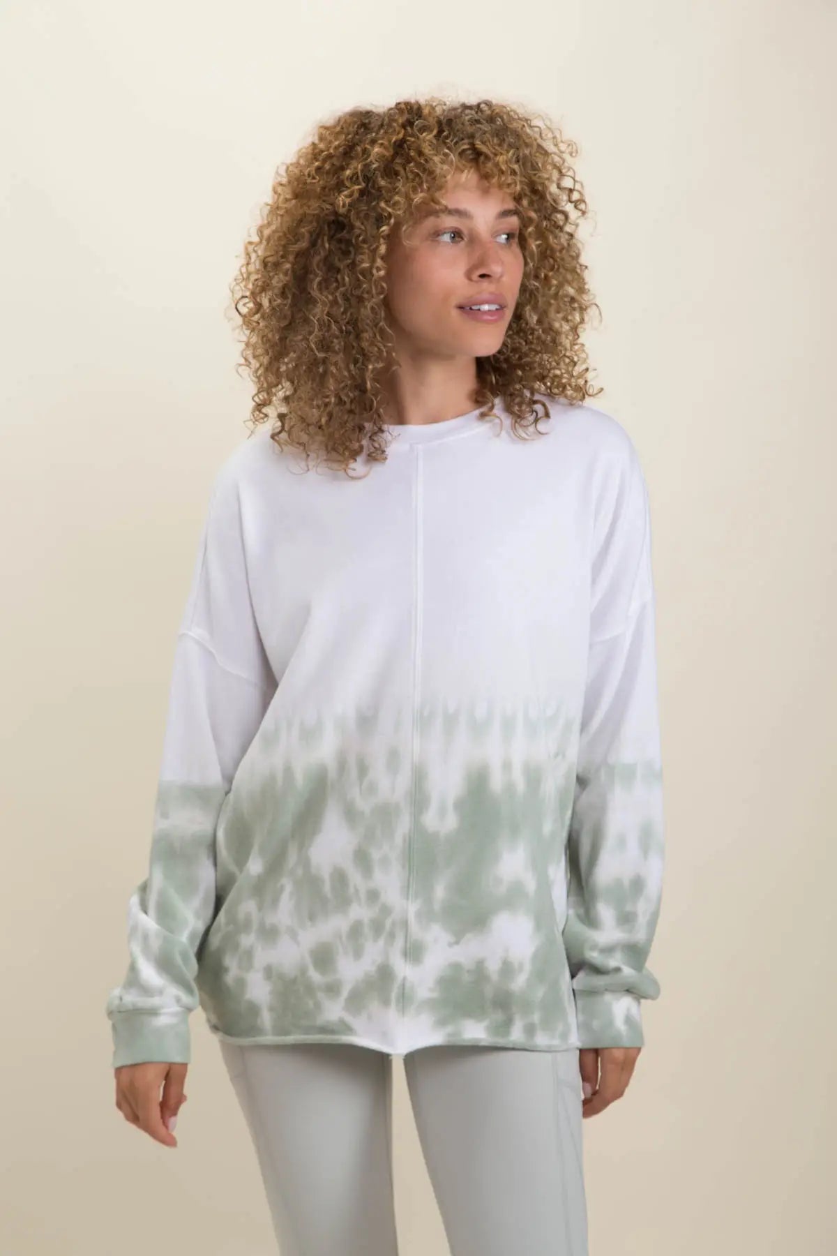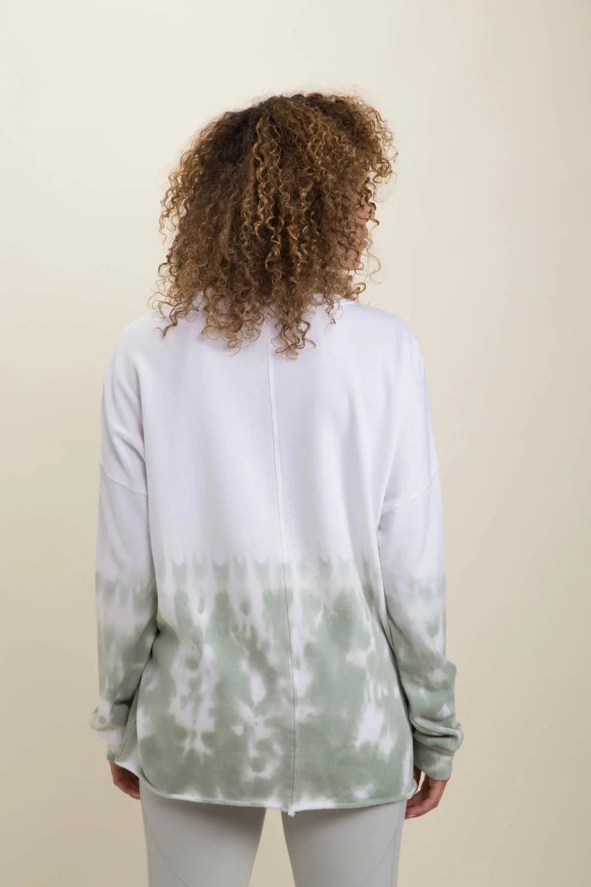 This cotton-poly-blend pullover features a rounded neckline and long sleeves, as well as a tie-dye in the bottom half of the body and the sleeves for a cool, gradient effect.