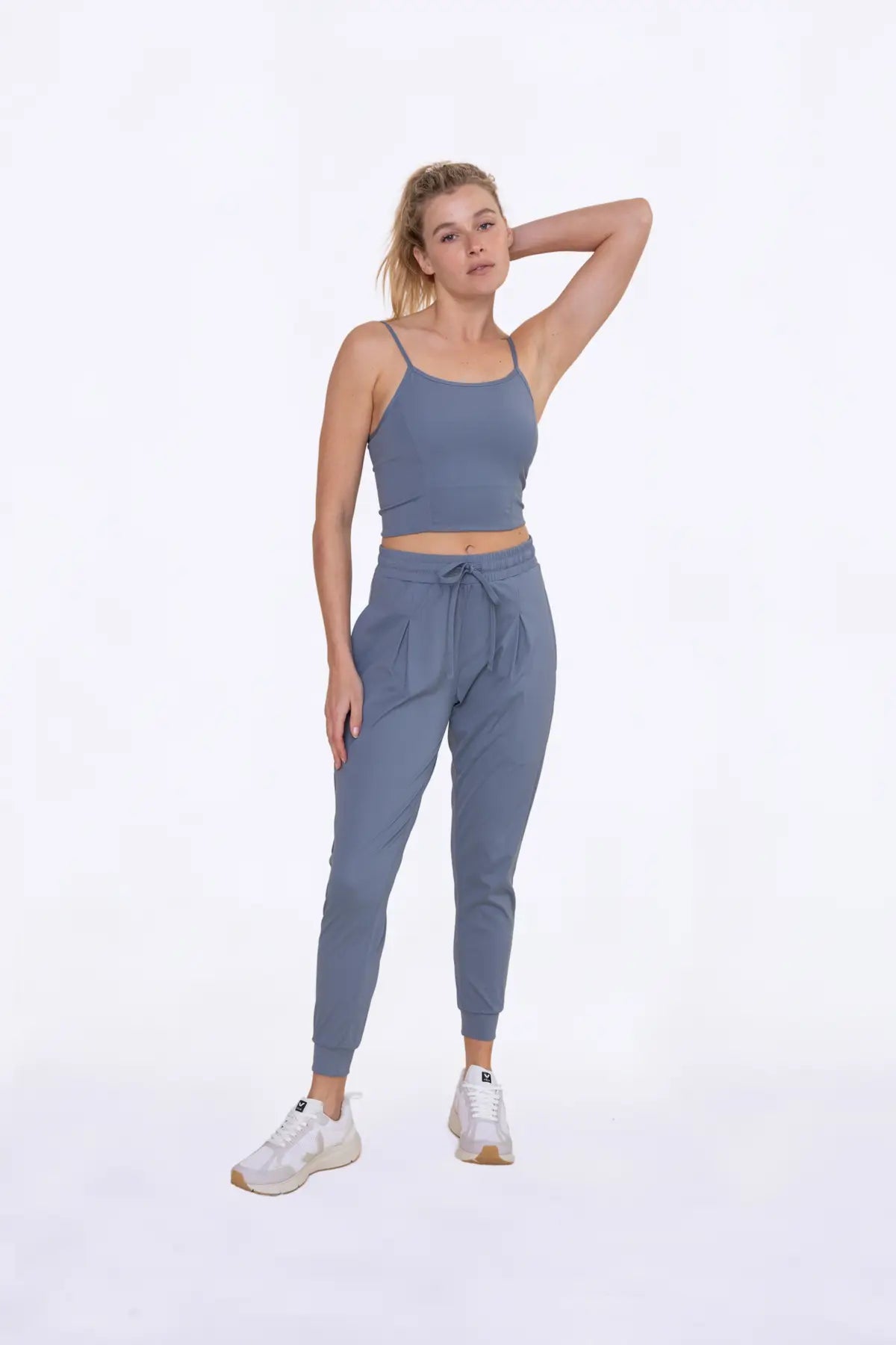 These silky jogger pants feature an adjustable drawstring waistband, inseam pockets, front pleats, and cuffed hems. Wear them while working from home or running errands.