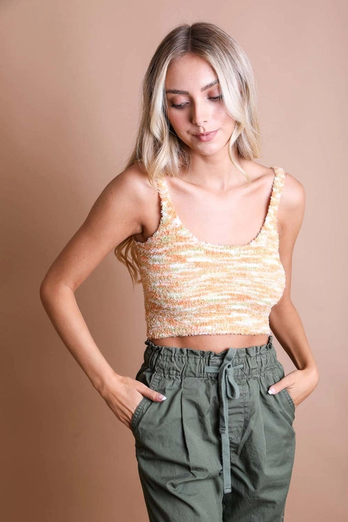 Introducing the Whimsical Brami - a cozy and quirky addition to your wardrobe! Made with 100% polyester and crafted with our unique boucle yarn, this brami offers ultimate comfort and a touch of whimsy.